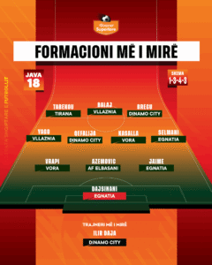 Pas përfundimit të javës së 18-të të kampionatit “Abissnet Superiore”, trajnerët e ekipeve Kombëtare kanë përzgjedhur formacionin dhe trajnerin më të mirë të javës, sipas skemës 1-3-4-3.
