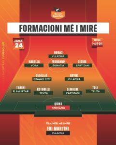 Në vijën ofensive pas sulmuesit janë përzgjedhur Irgi Kasalla (Vora), Fernando Medeiros (Egnatia) dhe Sekou Sidibe (Partizani).