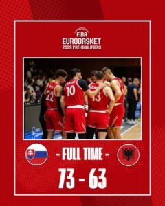 Kombëtarja shqiptare e basketbollit për meshkuj është mundur nga Sllovakia me rezultatin 73-63 në ndeshjen e parë FIBA EuroBasket Pre-Qualifiers.