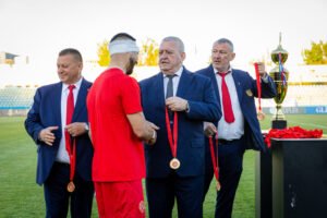 Në përfundim të takimit, atmosfera festive kulmoi me ceremoninë e dorëzimit të kupës, ku Presidenti Armand Duka, i dorëzoi trofeun skuadrës së Besëlidhjes.