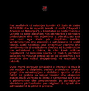 Klubi i Flamurtarit ka mbajtur qëndrim zyrtar ndaj futbollistit Lorenc Trashi, kapiten i skuadrës. Sipas postimit të klubit vlonjat në faqen e vet, lojtari është pezulluar përkohësisht pas ngjarjeve të ndeshjes së fundit me Bylisin në Ballsh, ku Flamurtari u mund 2-1 në sekondat e fundit.