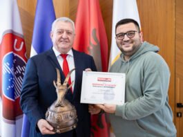 Pas takimit në Bashki z.Rover u prit nga presidenti i KF Vllaznia z. Alban Xhaferi dhe sekretari i përgjithshëm, z.Blendi Dibra.