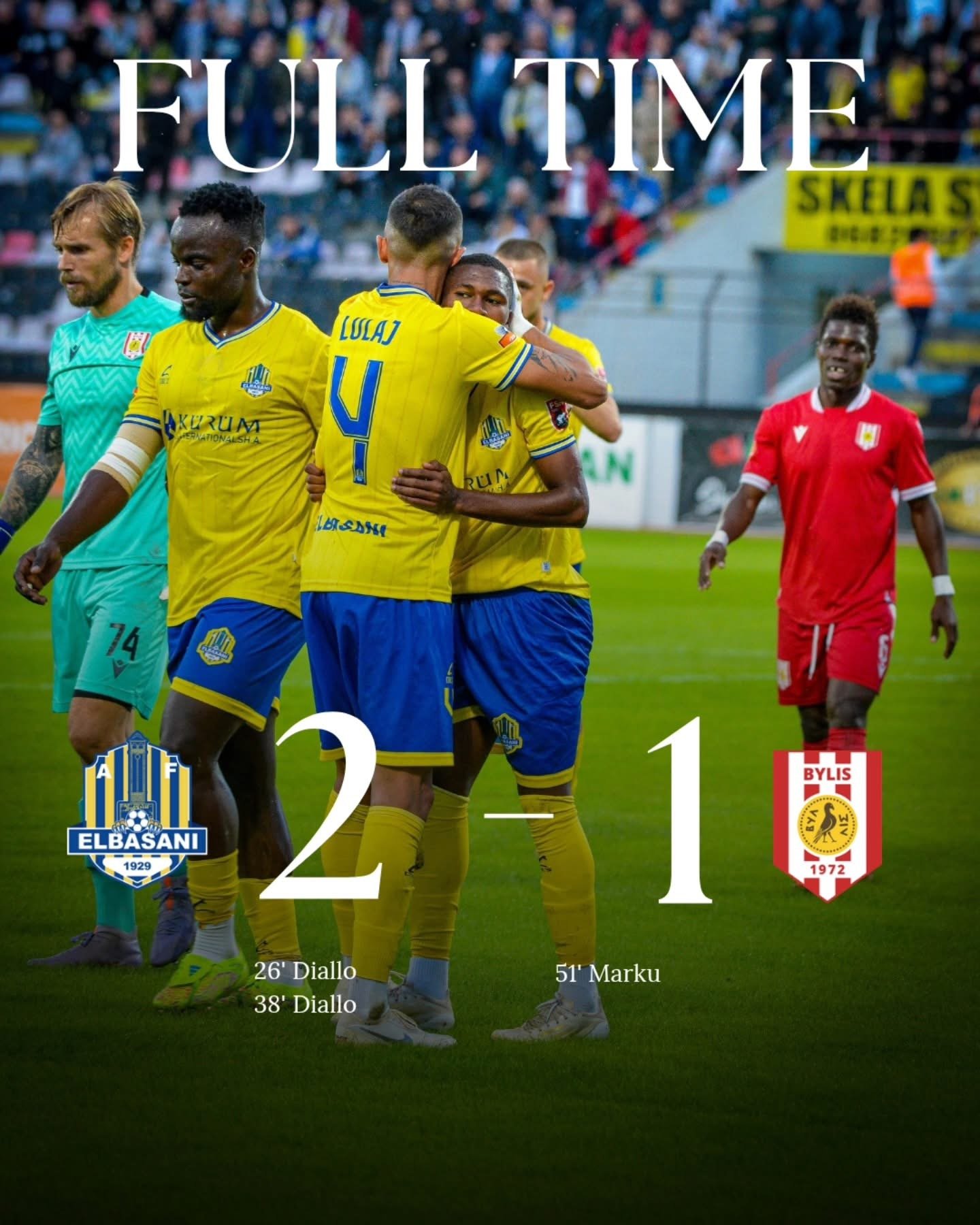 Në minutën e 26-të, Diallo kaloi Elbasanin në avantazh me një goditje dënimi të saktë, ndërsa në minutën e 38-të, ai dyfishoi rezultatin nga pika e bardhë e penalltisë. Pjesa e parë u mbyll me shifrat 2-0 për vendasit.