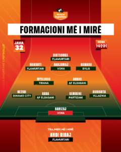 Në majën e sulmit është vendosur Archange Bintsouka (Flamurtari), i cili u dallua me paraqitjen e tij në këtë javë të kampionatit.