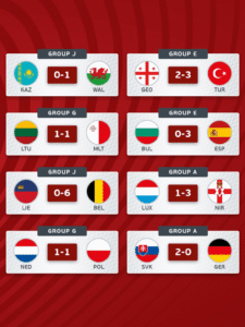 Në Grupin A, Gjermania pësoi një humbje tronditëse 2-0 kundër Sllovakisë, ndërsa në Grupin G, si Holandë-Poloni ashtu dhe Lituani-Maltë përfunduan 1-1.