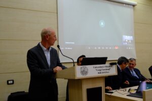 Në fjalën e tij, Rektori Gjuraj përshëndeti zhvillimin e kësaj konference, duke theksuar se Universiteti i Shkodrës “Luigj Gurakuqi” është gjithmonë i gatshëm të mirëpresë aktivitete të tilla. Ai vlerësoi bashkëpunimin me EIM si iniciativë amerikane, duke nënvizuar aspektin ndërdisiplinar të konferencës.
