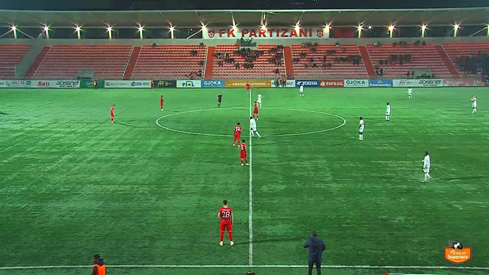 Pas barazimit 0 me 0 në pjesën e parë, Partizani arrin të gjejë golin e avantazhit në minutën e 72-të me Diego Contreras, që godet saktë brenda zonës. Përpjekjet e ballshiotëve nuk munguan, por pa forcën e duhur për të ndryshuar fatin e ndeshjes.