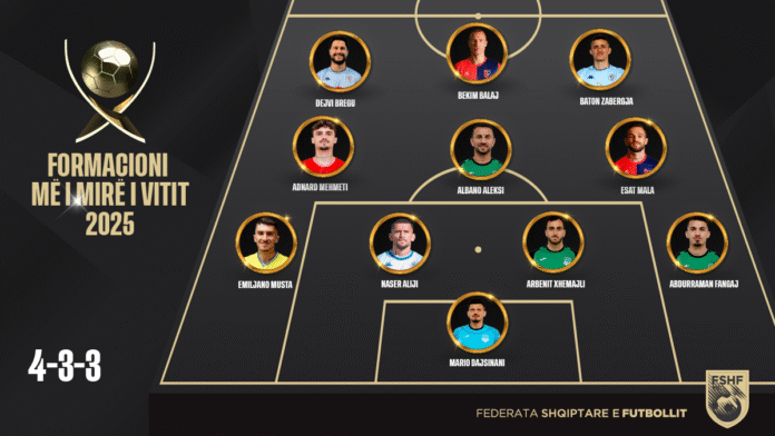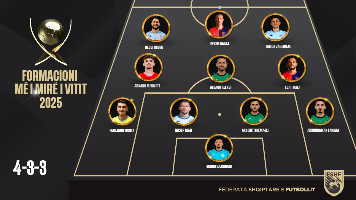 Një nga momentet më të veçanta të Mbrëmjes Gala “Topi i Artë 2025” ishte shpallja e Formacionit më të Mirë të Vitit të “Abissnet Superiore”, i përzgjedhur nga gazetarët dhe opinionistët sportivë, sipas skemës 1-4-3-3.